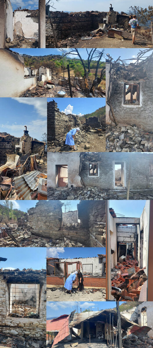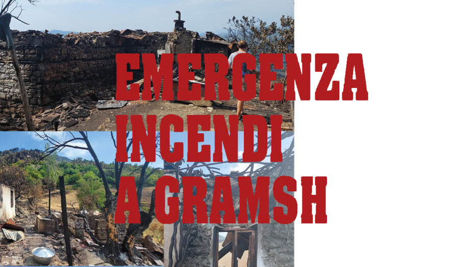 Ad agosto un violento incendio ha colpito la zona attorno a Gramsh. Appiccato per vendetta, il fuoco, alimentato dal caldo torrido e dal vento, in pochissimo tempo ha raggiunto diversi villaggi distruggendo tutto ciò che ha incontrato: ettari di bosco, piante, animali, vigneti, uliveti, orti, stalle e soprattutto case.